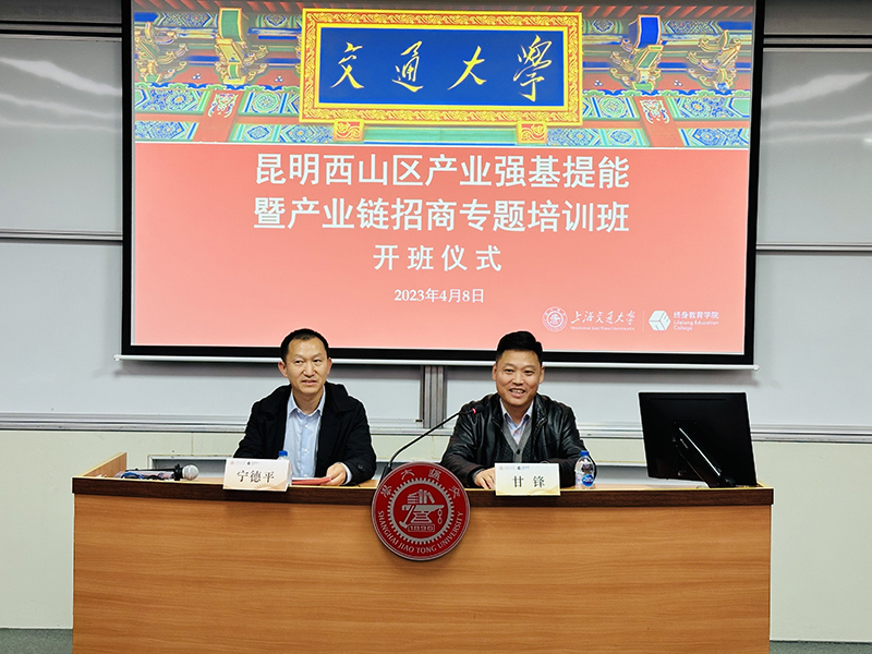 4月8日下午,由上海交通大学终身教育学院承办的昆明西山区产业强基提能暨产业链招商专题培训班在上海交大长宁校区开班。昆明西山区商投局党组书记、昆明长坡泛亚国际物流园区党工委委员宁德平,上海交通大学终身教育学院经济管理创新中心主任甘锋出席开班典礼。来自昆明西山区共计45名干部参加了此次培训。开班仪式由上海交通大学终身教育学院经济管理创新中心副主任田红梅主持。