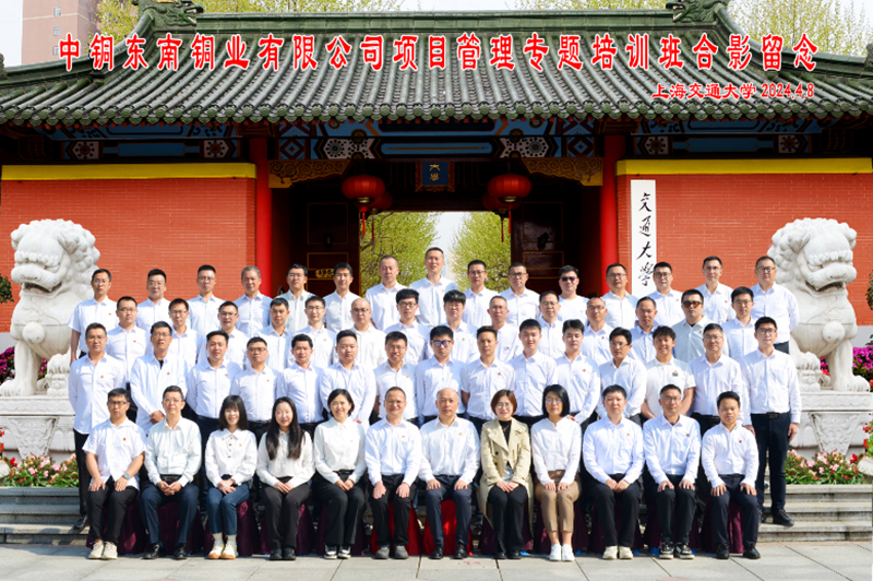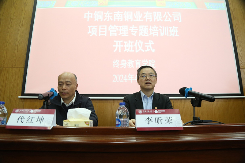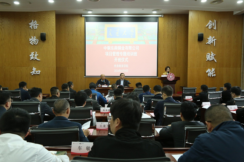 4月8日,中铜东南铜业有限公司项目管理专题培训班在上海交通大学徐汇校区顺利开班。中铜东南铜业有限公司总经理助理代红坤、上海交通大学终身教育学院党委书记李昕荣出席本次开班仪式。56位中铜东南铜业有限公司项目管理人员参加此次培训。