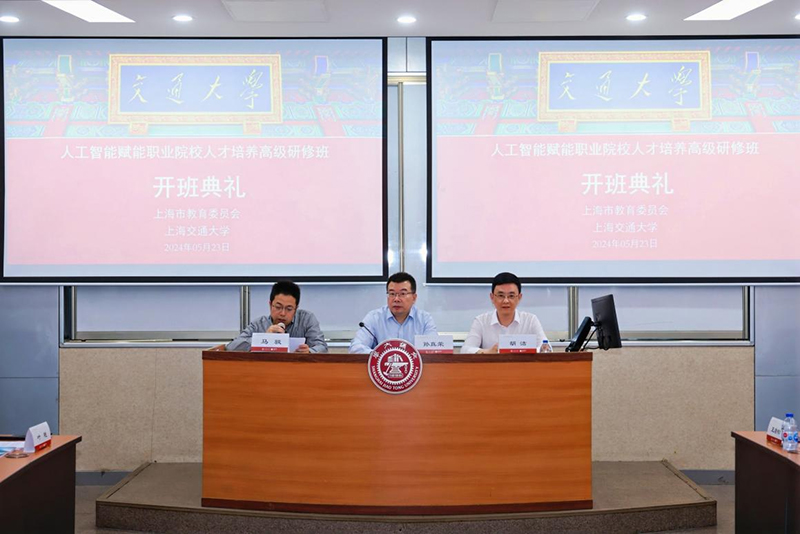 为深入贯彻《国家职业教育改革实施方案》和《推进现代职业教育高质量发展的意见》,积极响应国家对职业教育数字化、信息化、智能化的战略部署,聚焦人工智能浪潮下大国工匠培养模式的创新,5月23日下午,由上海市教育委员会主办、上海交通大学承办的“人工智能赋能职业院校人才培养高级研修班”在上海交通大学长宁校区顺利开班。来自上海27所职业院校的79名校级领导、工科主任、学科带头人、骨干教师参加本次培训班。