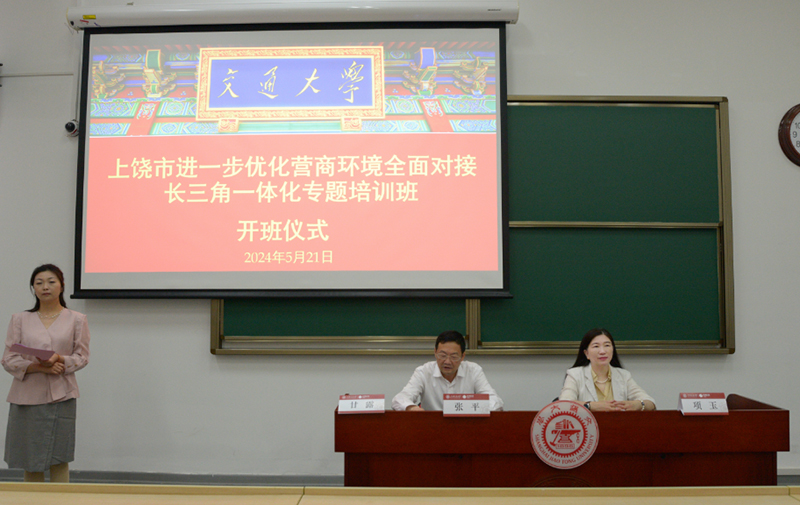 5月21日,上饶市进一步优化营商环境,全面对接长三角一体化专题培训班在徐汇校区顺利开班。上饶市发改委党组书记、主任张平,上海交通大学终身教育学院副院长项玉出席本次开班仪式。来自上饶市各县(市、区)人民政府、上饶经济技术开发区、三清山风景名胜区、高铁经济试验区分管领导,市全方位对接长三角一体化发展工作领导小组、市优化营商环境工作领导小组主要成员单位分管领导,“12+3”发改(经发)负责人,市发改委、市重点项目服务中心、市口岸发展中心的90余位代表参加此次培训。