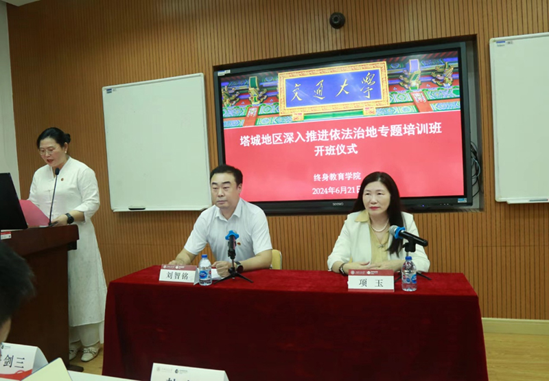 6月21日,塔城地区深入推进依法治地专题培训班在上海交通大学长宁校区顺利开班。新疆维吾尔自治区塔城地委政法委副书记刘智铭、上海交通大学终身教育学院副院长项玉参加开学仪式。塔城地区地县政法单位、地直有关部门分管领导和业务骨干共50人参加此次培训。