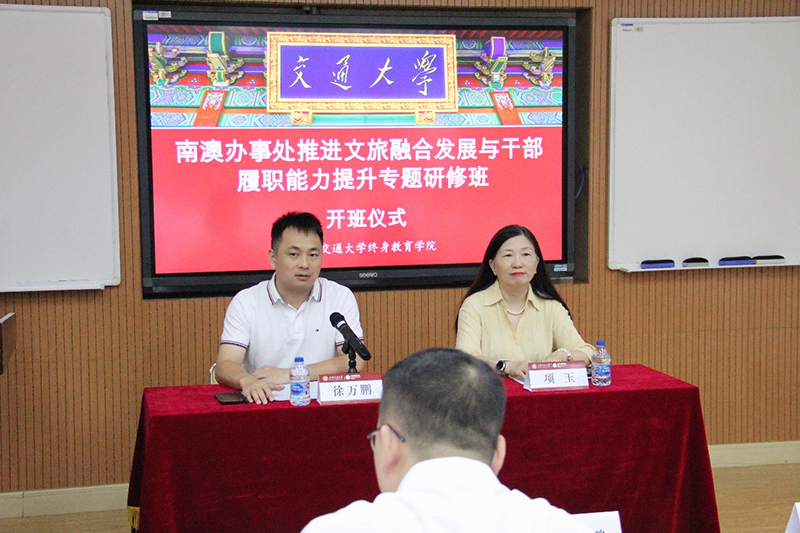 开学仪式上,项玉首先向参加此次培训班全体学员的到来表示欢迎,对培训班开班表示祝贺。她为在场学员介绍了上海交通大学和终身教育学院的历史、现状及未来发展方向,并感谢了深圳市大鹏新区南澳办事处领导的信任。她表示,相信通过此次培训必将推进南澳办事处的进一步发展,希望大家学有所思,学有所获,切实提高管理、创新能力,在未来的工作中知行结合,学以致用。