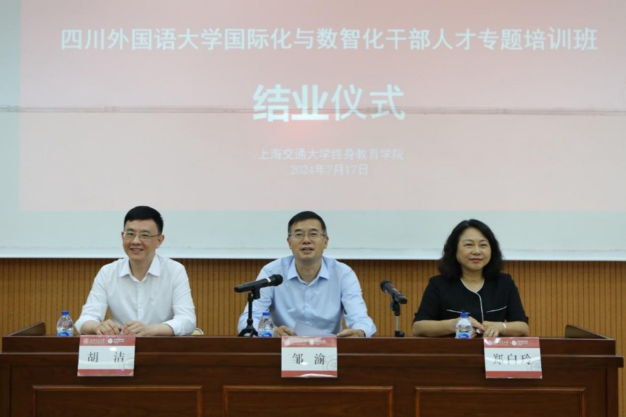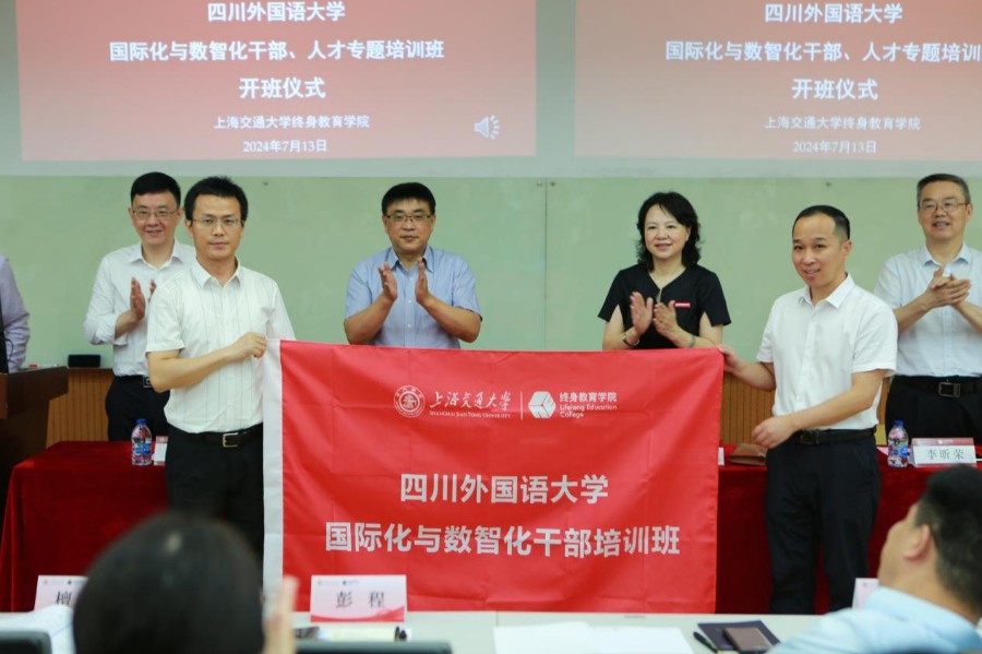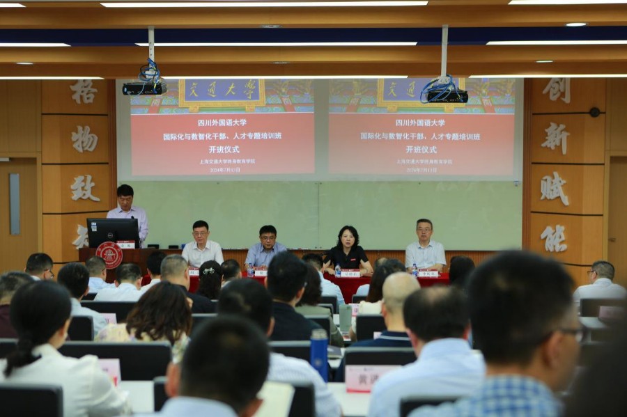 7月13日至17日,四川外国语大学国际化与数智化干部、人才专题培训班在上海交通大学长宁校区举行。上海交大党委书记杨振斌作专题报告。四川外国语大学党委书记邹渝,党委副书记苟朝莉、副校长郑白玲,上海交大党委副书记、纪委书记周承,党委副书记、副校长胡薇薇,终身教育学院负责同志出席相关活动。来自四川外国语大学的50名中层干部、20名高层次人才参加培训。