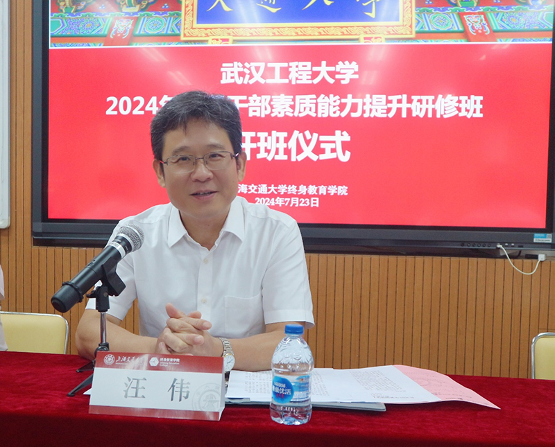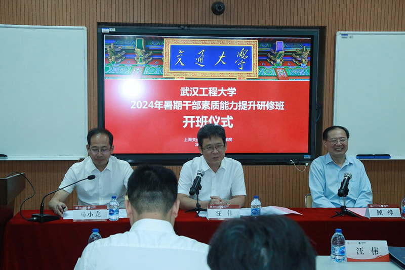 7月16日至20日,武汉工程大学2024年暑期干部素质能力提升研修班在上海交通大学长宁校区顺利举行。武汉工程大学党委书记汪伟,武汉工程大学党委常委、副校长、党委组织部部长马小龙,上海交通大学校务委员会专职副主任顾锋出席开班仪式。来自武汉工程大学党政领导班子及中层干部约50人参加培训。