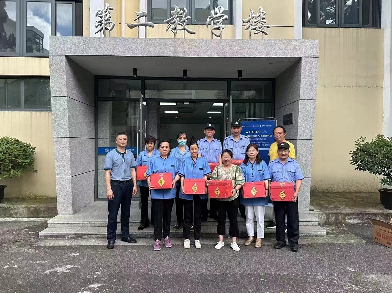 7月25日,院长助理高天峰与学院校区办副主任周启荣还前往七宝校区保卫处、后勤保障中心和物业,看望并感谢了工作人员,为大家送上防暑降温用品,令大家在夏日中都深深感受到了学院的温暖与关怀。
