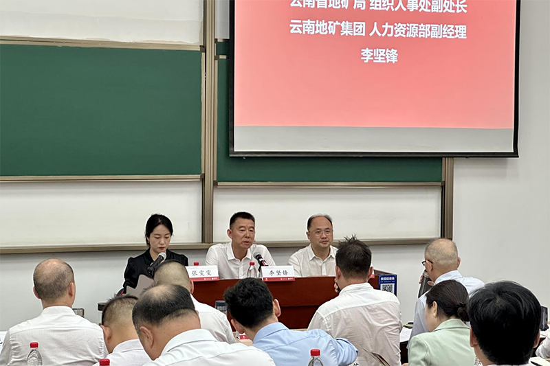 李坚锋代表云南省地矿局,向终身教育学院为本次培训所做的精心准备表示衷心的感谢,向全体参训学员表达亲切的问候。他表示云南地矿集团非常重视此次培训,希望通过培训助力云南地矿集团产业工人队伍建设改革,进一步落实党的二十届三中全会精神,培养造就一支具有战略思想、精通业务、善于管理的干部队伍。