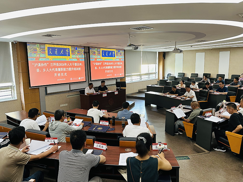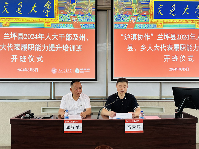 8月5日上午,由上海交通大学终身教育学院承办的“沪滇协作”兰坪县2024年人大干部及州、县、乡人大代表履职能力提升培训班在上海交大长宁校区开班。云南省怒江州兰坪县人大常委会党组成员、副主任鹿辉平,上海交通大学终身教育学院院长助理高天峰出席开班典礼。来自兰坪县共计43名人大干部及人大代表参加了此次培训,开班仪式由经济管理创新中心钟文翔老师主持。