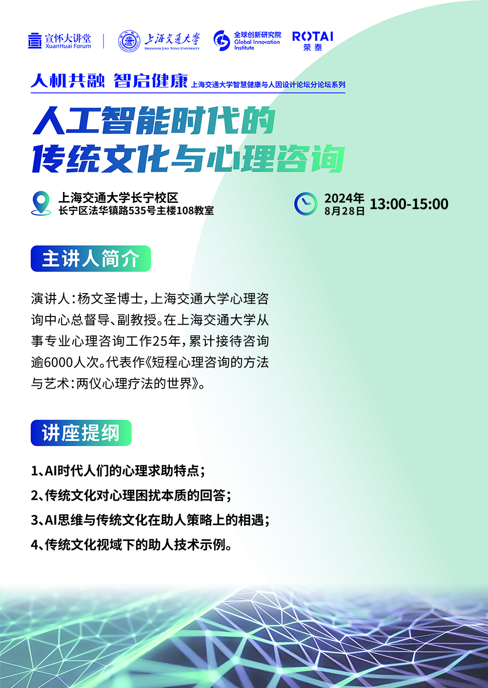 【演讲主题】《人工智能时代的传统文化价值与心理咨询实践》