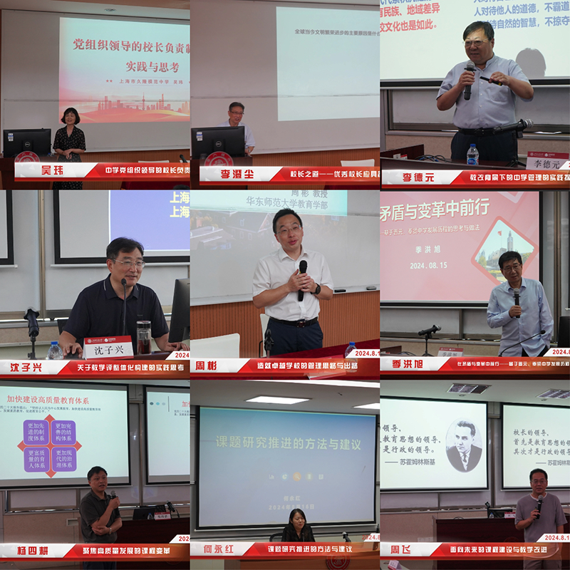 本次培训邀请到了上海市长宁区教育学院、上海市教科院基础教育所及上海多所知名中小学专家校长前来讲座。授课主题以中小学党组织领导的校长负责制为引领,围绕教学管理、教学改革、教学评整体化、数字化教学及课题研究等多维度、全方面的展开交流与探讨,力求为培训学员们在实际工作岗位中将理论知识真正落地提供了借鉴和参考。专家教授们的讲座分享观点高屋建瓴、语言风趣幽默,不仅深入浅出地剖析了当前教育管理的热点问题,更以前瞻性的视角指出了未来教育改革的方向,为学员们带来了一场思想的盛宴。