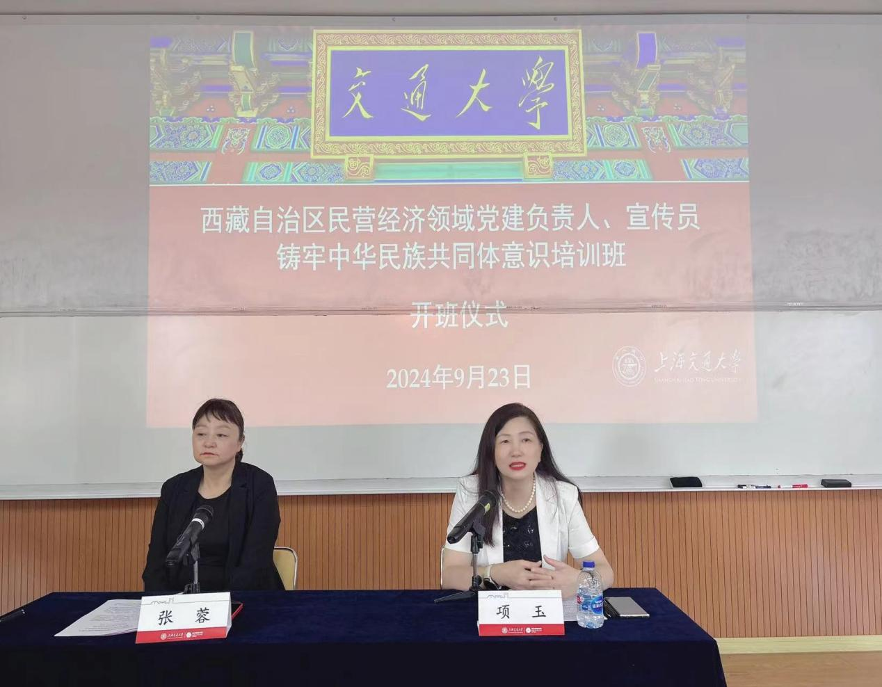 9月23日上午,由上海交通大学终身教育学院承办的西藏自治区民营经济领域党建负责人、宣传员铸牢中华民族共同体意识培训班在上海交大长宁校区开班。西藏自治区工商业联合会党组成员张蓉、上海交通大学终身教育学院副院长项玉出席开班典礼。来自西藏的50名西藏自治区工商业联合会干部共同参加了此次培训。开班仪式由上海交通大学终身教育学院经济管理创新中心副主任田红梅主持。