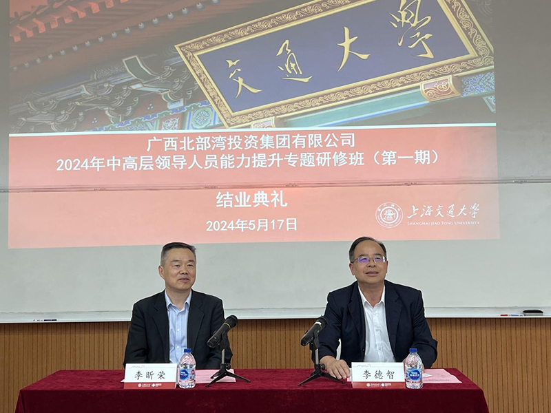 培训结束当天,广西北部湾投资集团有限公司党委书记、董事长朱坚,上海交通大学终身教育学院党委书记李昕荣参加了本次结业仪式。